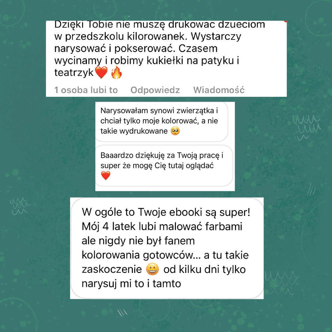 Jak zawsze przyświecała mi myśl: ma być prosto, ale ładnie. Ilustracje mają być wdzięczne i charakterystyczne. Stworzone Twoją ręką zyskają oryginalnej energii i na pewno zachwycą Twoje dziecko:).